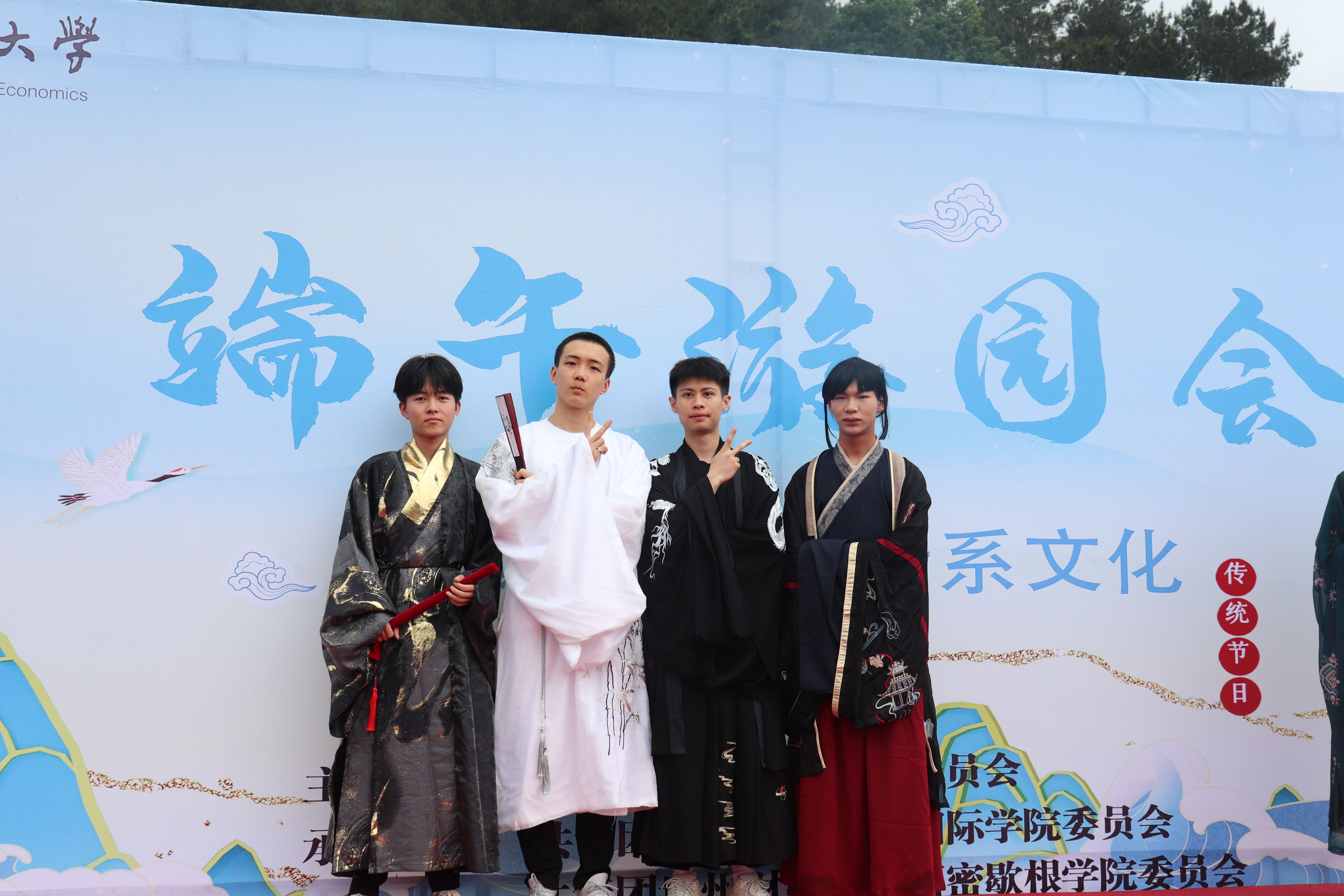 活动在汉服模特走秀中开始。员工们穿着中国古代各朝代服饰,在古典欢快的背景音乐下,意气风发走来。他们或执扇微笑、或撑伞前行,举手投足间尽显传统古韵美感,通过不同年代服饰与文化间的碰撞,尽现中华文明礼仪之美与青年老员工的朝气蓬勃。同时,“传统文化集市”也盛大开幕。同学们结合自身专业优势,在第二教学楼大厅设置剪纸、DIY纸盘贴画、手工香包、饰品兜售以及趣味游戏等摊位,为现场师生带来了不一样的端午体验。师生们欢聚一堂,在游园会中充分感受到了我国传统节庆的浓厚氛围。