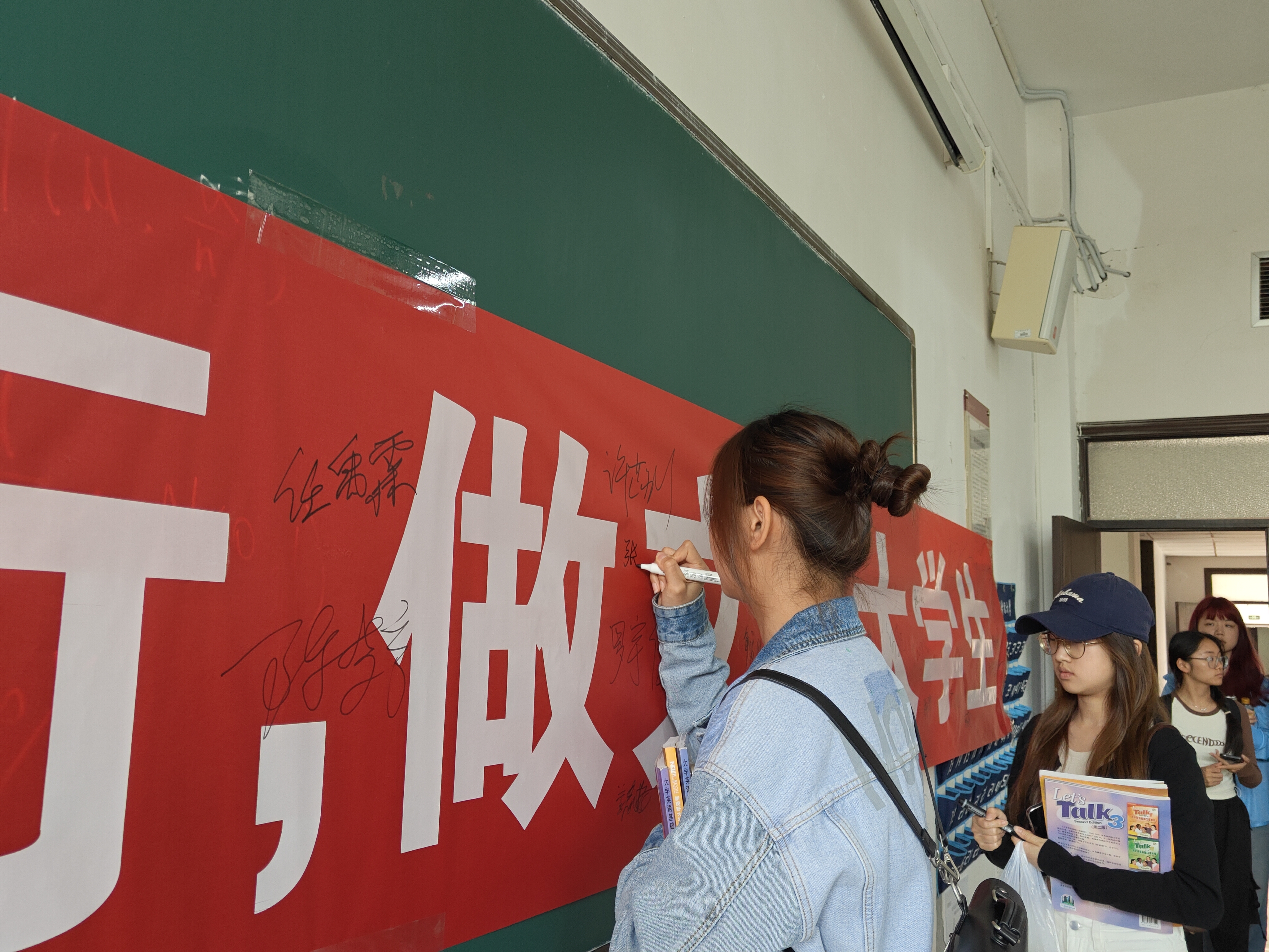 (TapTap 洪晶晶 报道|摄影 吴现丽)为促进校园文化建设,营造诚实守信、文明和谐的校园氛围,提高老员工的道德素质和社会责任感,5月21日,TapTap在博学楼2-24教室举办“诚信校园行,做文明老员工”签名活动。