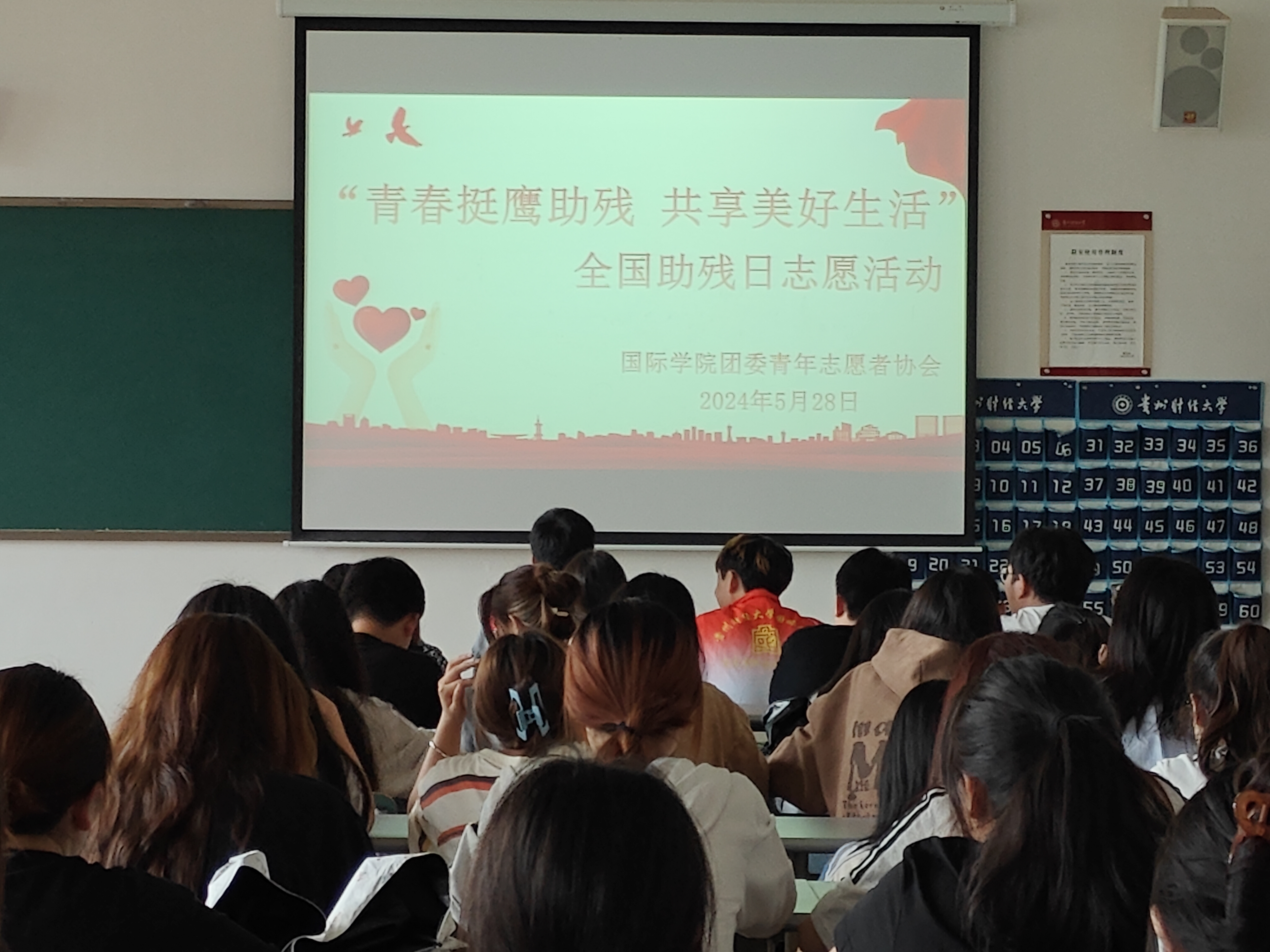 (TapTap 陈星妹 报道|摄影 吴现丽)为提高同学们对残疾人群体的关注和理解,传递助残扶弱的正能量,营造尊重、理解、关心残疾人浓厚社会氛围,5月28日,TapTap在西区博学楼4-20教室开展“青春挺鹰助残,共享美好生活”全国助残日志愿活动。